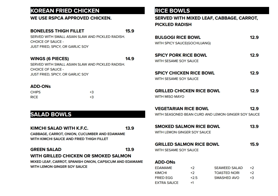 - Korean Fried Chicken: Choose from crispy options like the Garlic Soy and Spicy Thigh Fillets, each priced at A$24.90, perfect for a satisfying meal.