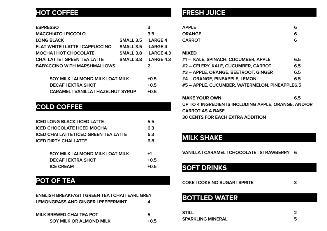 - Drinks: Refresh yourself with selections including Ginger Beer and Sparkling Water, all reasonably priced, ensuring there's something for everyone.